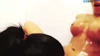 In the dim lighting of a luxurious mansion's private suite, two voluptuous lesbians indulged in an explicit session of pleasure, teasing one another with passion and desire as they exchanged heated gazes.Their soft, supple lips met in a lingering kiss, their bodies intertwined in the finest lingerie, accentuating every curve, dip and swell of their delicious forms.Their moans and sighs echoed throughout the room, evoking an atmosphere of raw sensuality and intense animalistic satisfaction.The two women slowly undressed each other, taking time to admire and fondle their partners' sensual delights.Each caress was meticulously slow, drawing out the anticipation that surged between them with every touch, making their passion grow hotter than ever.The smell of strawberry glaze filled the air as their mouths tasted each other's flesh, both eager to pleasure and be pleased in equal measure.The aroma of the sweet, sticky substance only added fuel to the already blazing inferno that consumed them.The two women explored one another's bodies with fervent enthusiasm, focusing on their sensitive spots and teasing each other in ways that brought forth heated sighs and shuddering moans.Their fingers traced intricate patterns over taut stomachs, tracing the curves of toned and well-defined muscles, while eager hands delved into wet, dripping folds of flesh.The intensity of their pleasure grew by leaps and bounds with every touch, as they explored their sensual connection in a dance of lust and desire.As the women's breaths quickened and their passion peaked, the taste of the raspberry glaze mingled with the natural flavors of each otherâs womanhood, creating an explosion of sensations that washed over them in delectable waves of ecstasy.The strawberry aroma intermingled with the scent of arousal and sweat filled the air as they clung to each other in the heat of their release.Their bodies shuddered together, a shared release of the tension they had built between them, both sated and fulfilled by the act that had just been consummated.Exhausted but content, they lay there, basking in the afterglow of their intense lovemaking.The sight of their cum and milk drenched bodies, covered in the evidence of their shared passion and glaze-like remnants of their love-fueled adventure, spoke to the intensity of the experience they had just undergone together.Their hearts swelled with a mixture of affection and anticipation as they looked at each other through a haze of shared pleasure.My dear, one of them whispered, breaking the silence that had settled over them.Our first time was truly incredible.I hope we can do this again soon.Their eyes locked and smoldered with passion, eagerly looking forward to their next opportunity to indulge in their carnal desires once more.They reveled in the memory of the intense experience that had just passed, ready and willing to explore it all over again, in a tantalizing tribute to their love for one another.